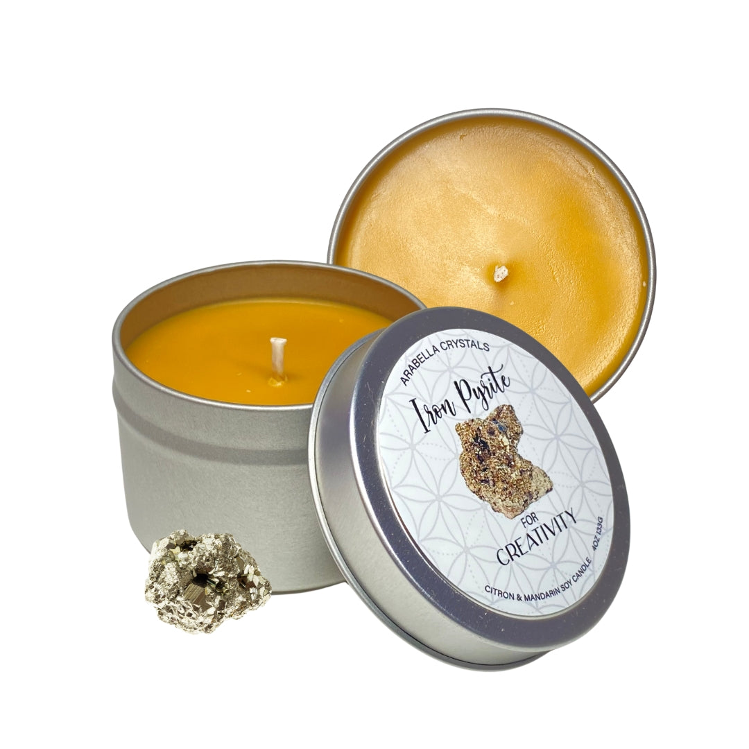 Iron Pyrite Crystal Candle Tin