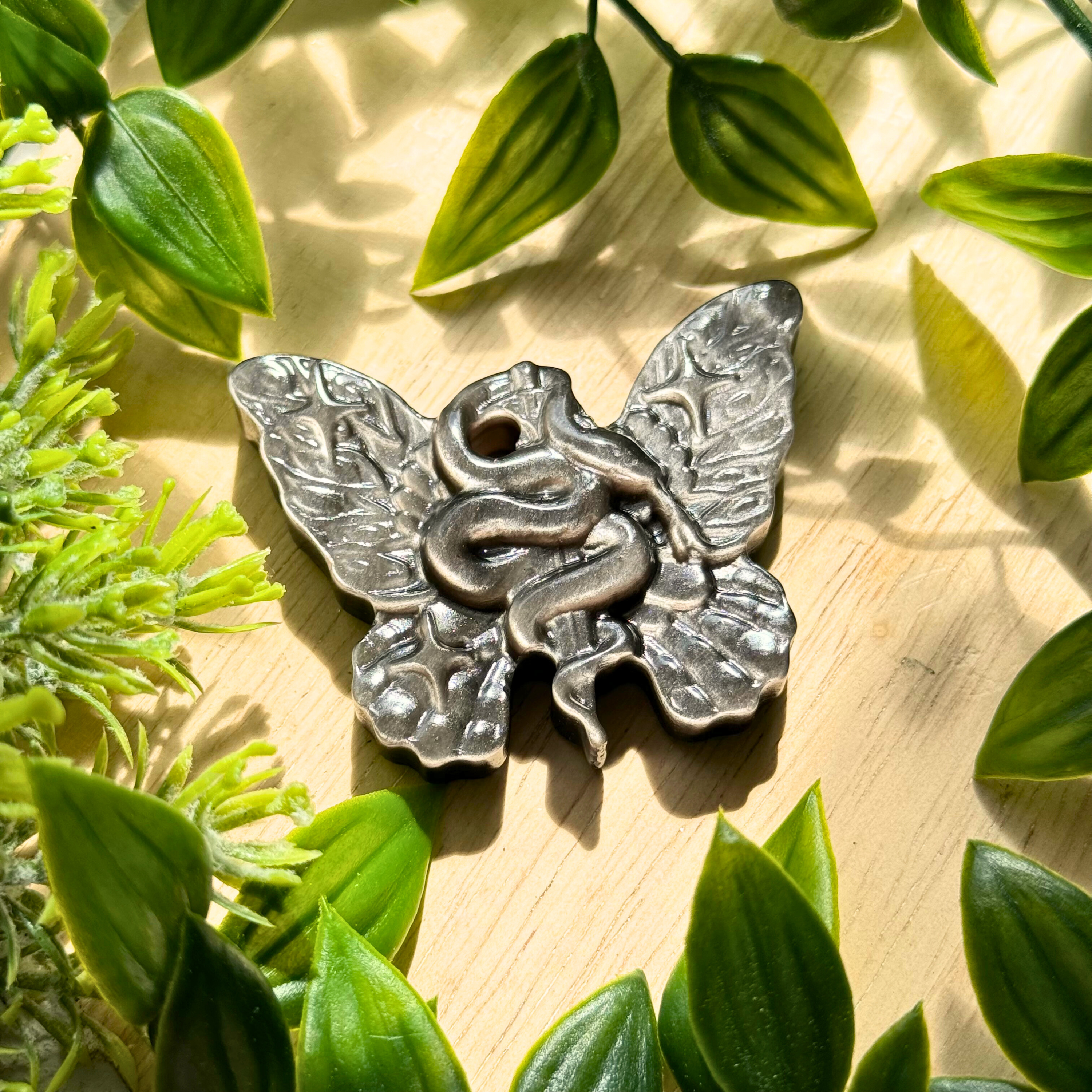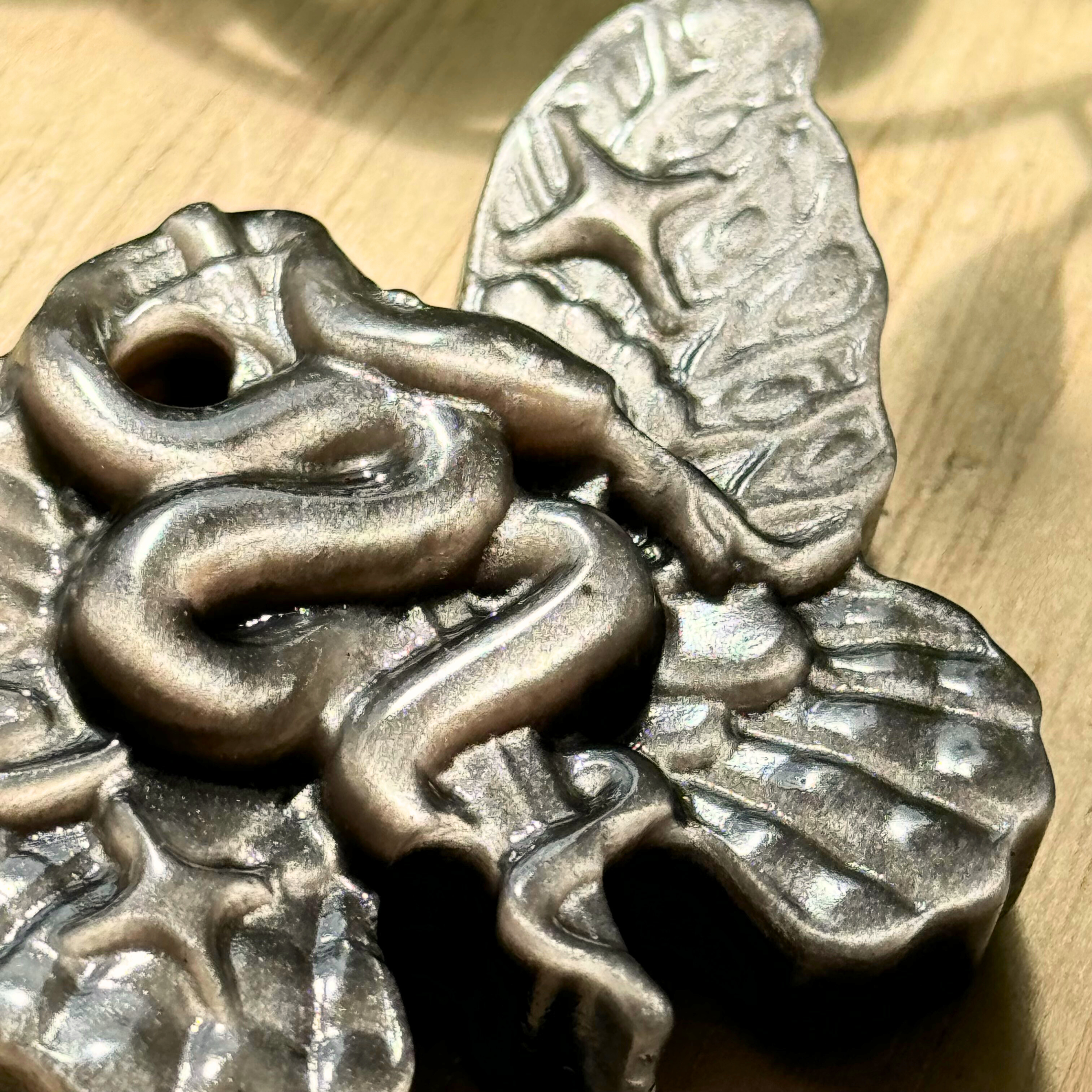 Silver Sheen Obsidian Butterfly Serpent Carving